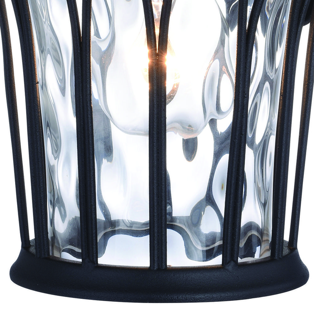 Textured black finish with clear water glass provides bright illumination and a traditional feel