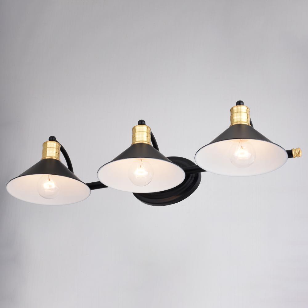 Akron 3 Light Vanity Matte Black and Natural Brass with Matte White
