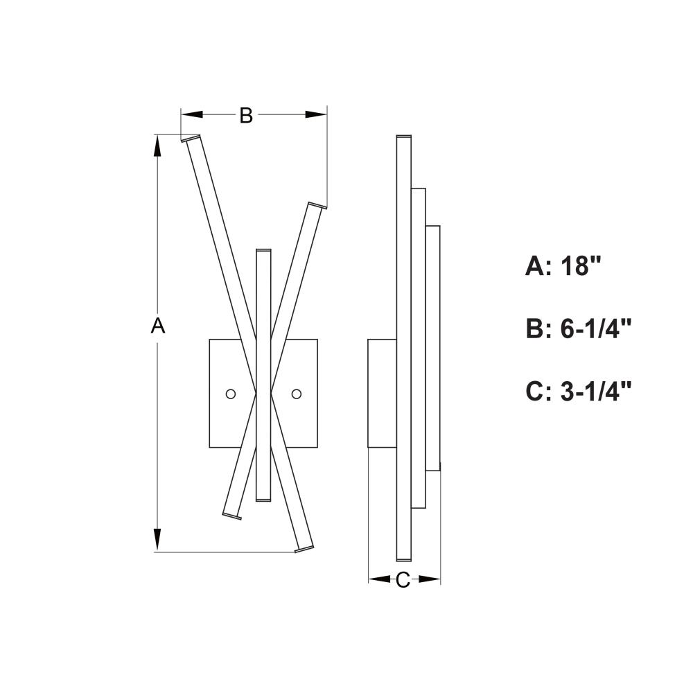 6.25-in W x 18-in H x 3.25-in D with 4.75-in W x 4.75-in H backplate