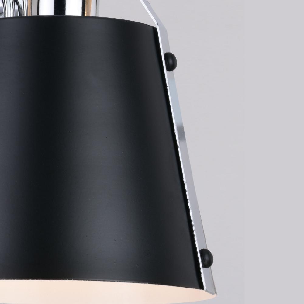 A sophisticated blend of contemporary and industrial styles, the Barrington collection is all about the finer details. Tapered matte black metal shades suspend from a slim rod with riveted chrome straps. The white interior finish and up-down lighting features of the open top shades provide the optimal light output. This bathroom vanity light is ideal for a variety of areas including the bath and kitchen or anywhere there is a need for extra light.
