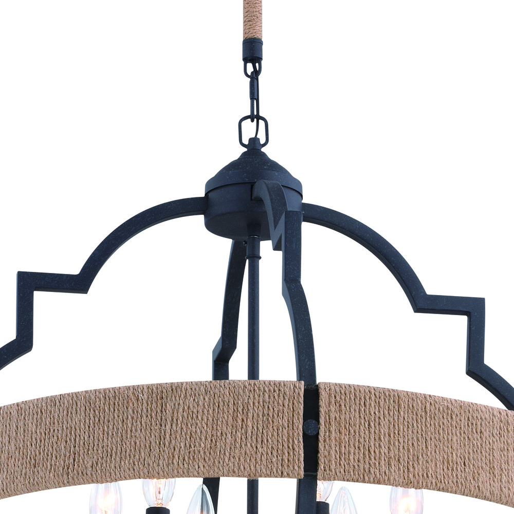 Beaumont 25 in. W 6 Light Pendant Textured Gray with Natural Rope