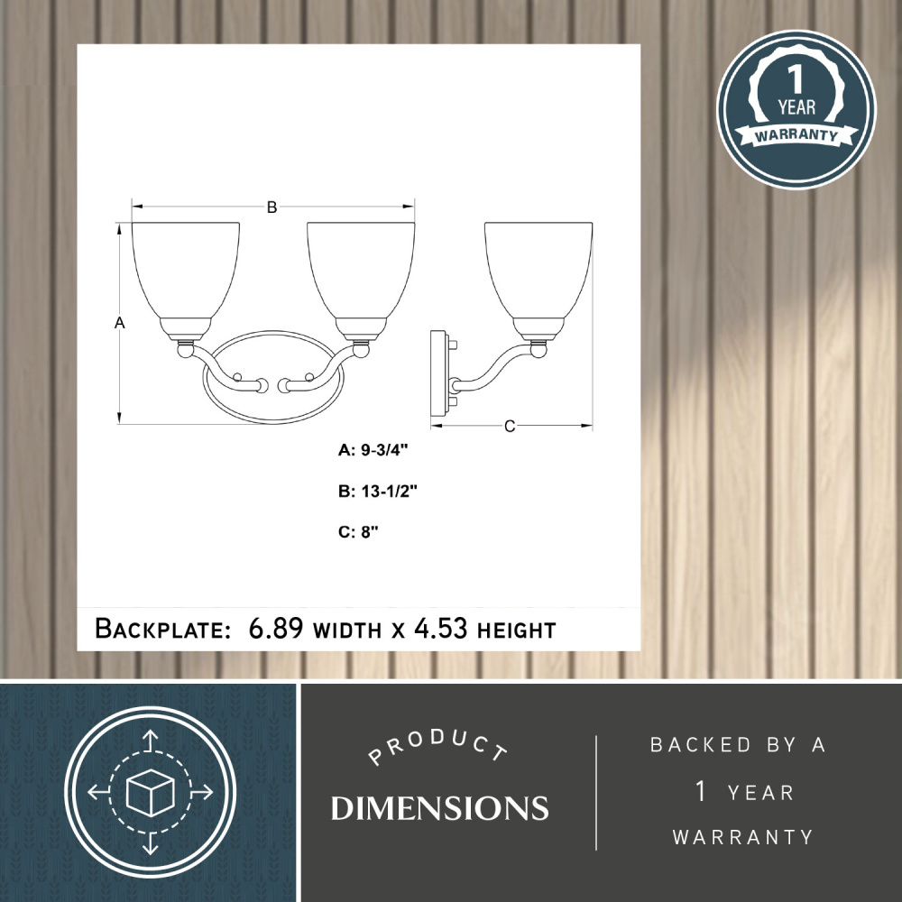 Transform your bathroom's ambiance with the Bellwood 2-light vanity, a perfect blend of classic design and modern sophistication. The satin nickel finish provides a timeless feel, while the frosted glass shades add a touch of vintage charm, diffusing a warm, inviting light. This wall light reimagines traditional style with thoughtfully updated details, including classic sphere accents and graceful tulip glass shades. Damp-rated for lasting performance, the Bellwood vanity is designed to withstand the moisture of bathroom environments. Enhance your daily routine with a fixture that seamlessly bridges traditional charm and modern functionality.