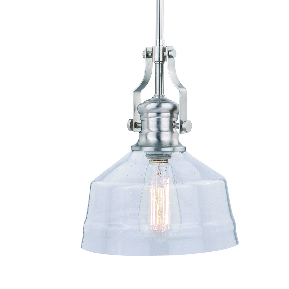 The Beloit collection a welcoming and inviting feel to your kitchen or living spaces. Soft curving lines finished in satin nickel, are paired with large clear seeded glass shades, creating a look that accents the most comfortable spaces. Combine that with a vintage Edison style filament bulb to complete the look. Bring a level of sophistication to your trendy farmhouse or urban style.