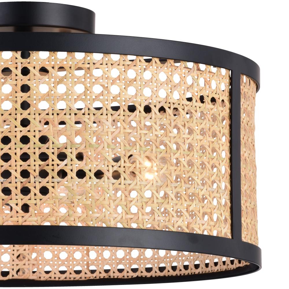 Natural rattan cane round drum shade provides bright illumination and a modern farmhouse style