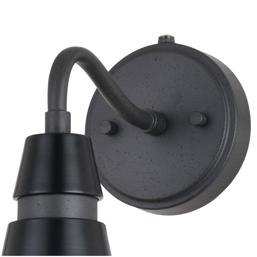 Modern charm is at its best in the Buena Park wall light. A monochrome finish of matte black accented by vintage black highlight this fixture’s striking appeal. The short gooseneck follows this barn light styled shade to its downward facing position. The white inner finish provides a soft glow of light on the subject below. The Buena Park collection is a stylish way to welcome you home. Add this to any outdoor or indoor space where a modern farmhouse style will be accentuated.