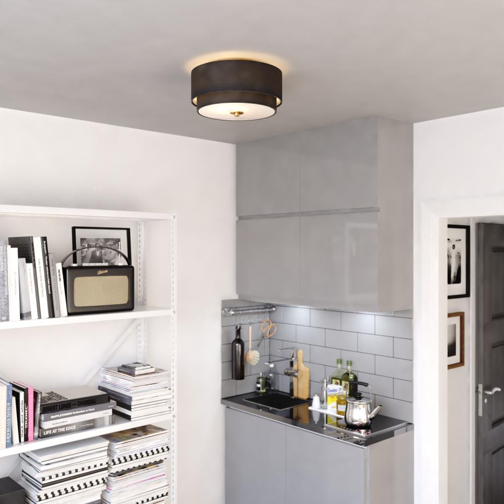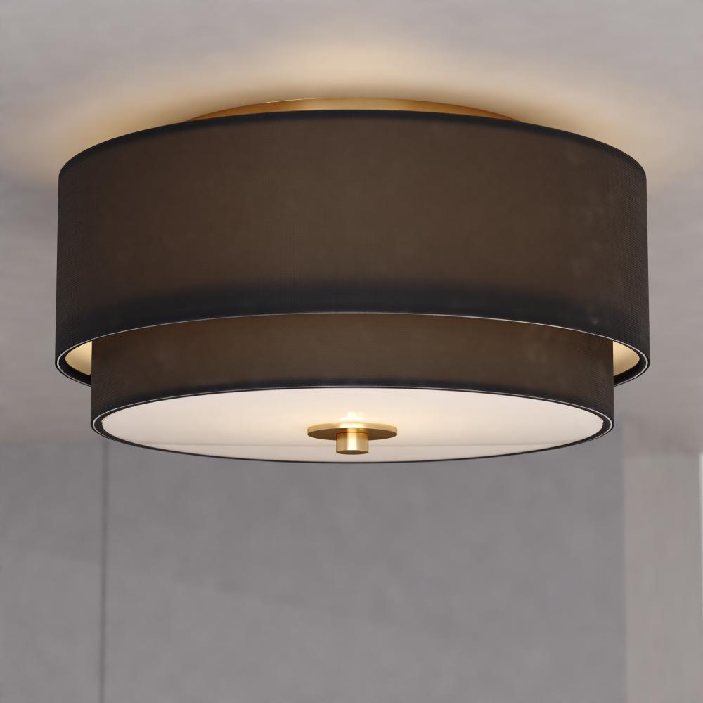 Burnaby 13-in. 2 Light Flush Matte Brass with Black Fabric