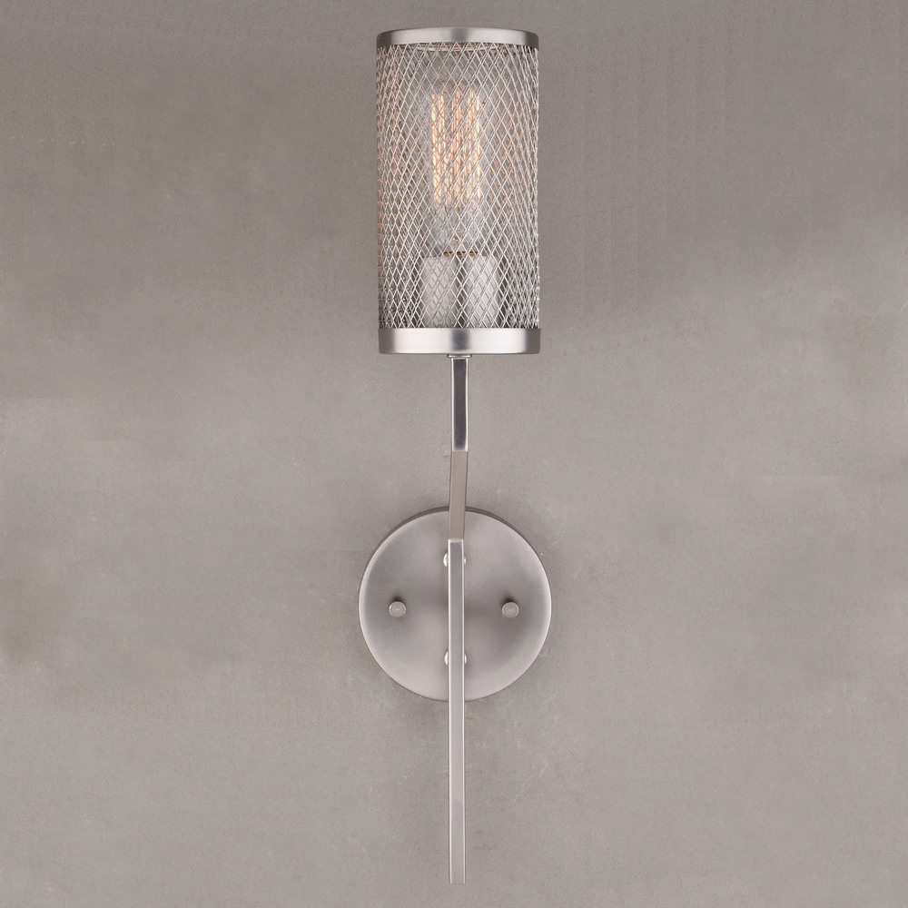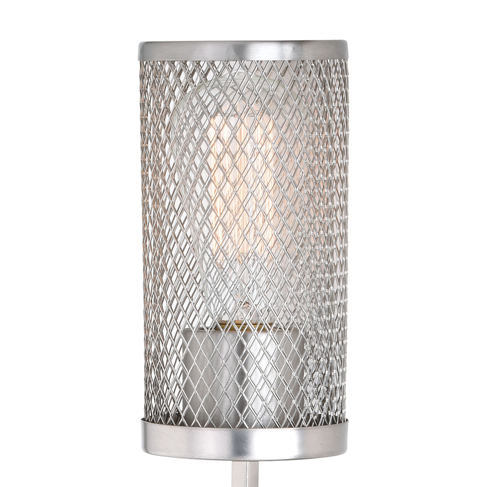Antique pewter metal mesh provides bright illumination and an urban loft feel