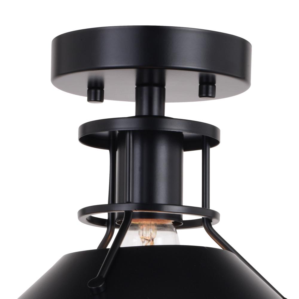 The Canton collection speaks loudly to industrial and farmhouse charm. The black metal shades taper outward to generate the utmost light below. A small cage-like structure allows light to peek out above the shade balancing the show of light. Add this interesting semi-flush to any kitchen or living space for that edgy touch of flair. With its damp rating, you can even add to any bath for that extra stylish touch.