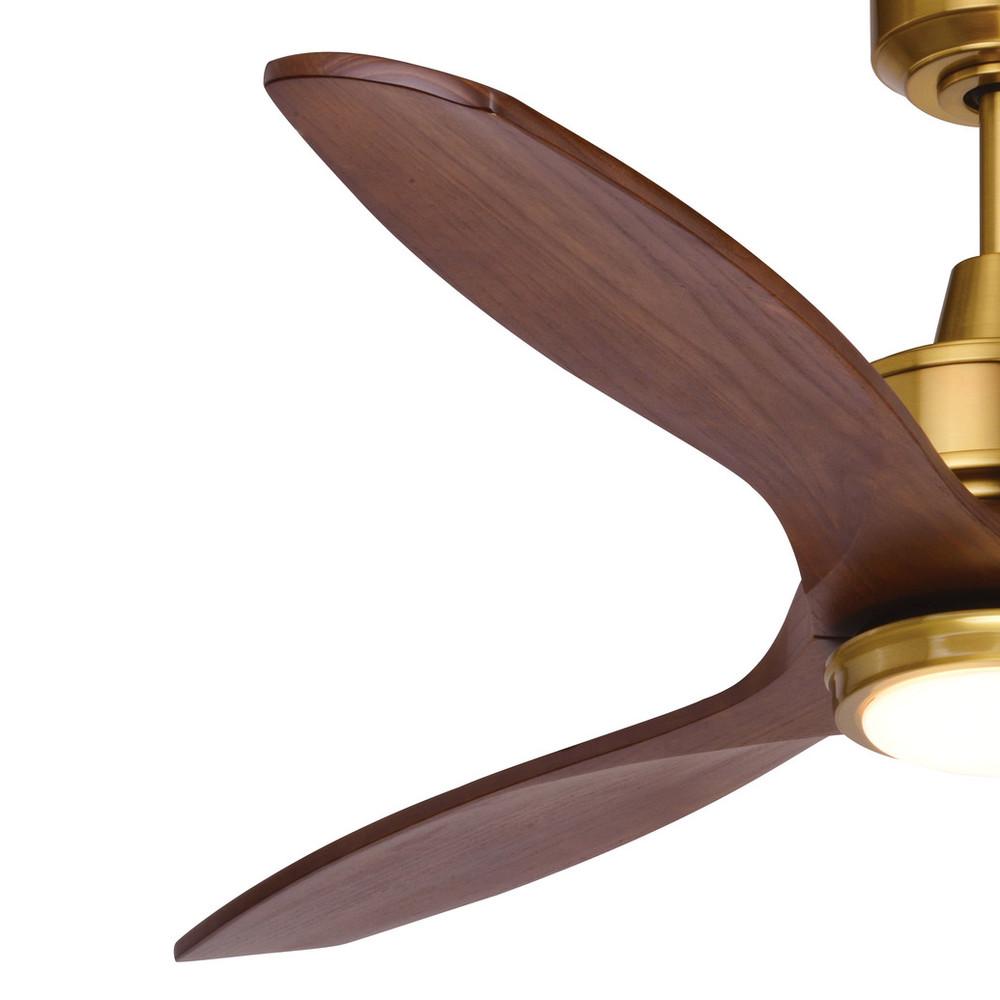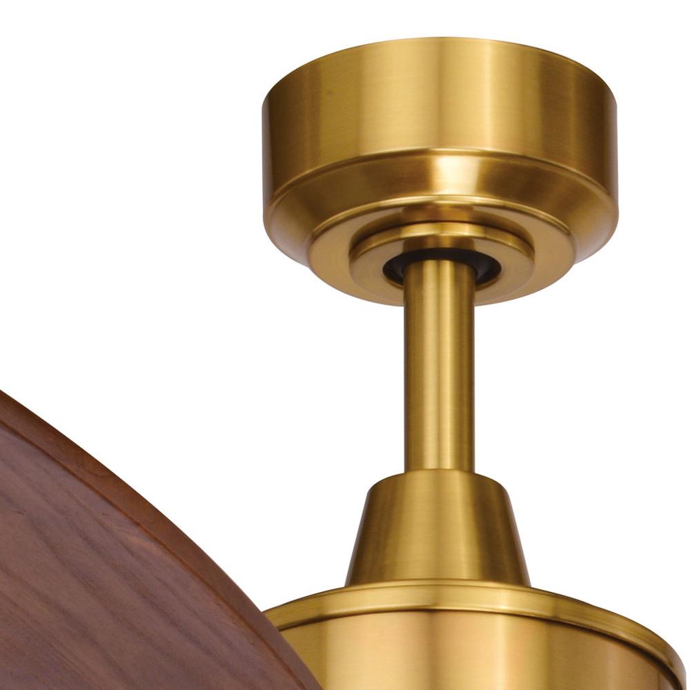 Hard carved solid wood blades finished in walnut perfectly compliment the satin brass motor housing