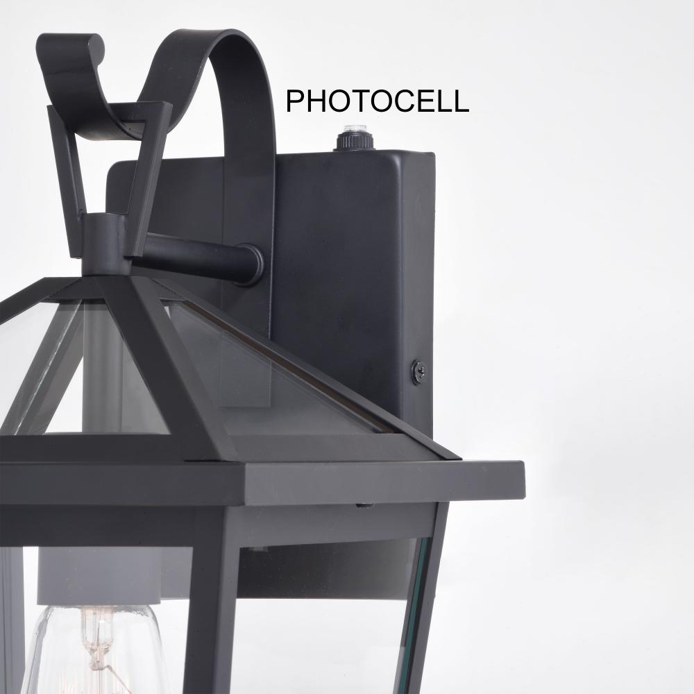 This traditional outdoor wall lantern from the Derby collection will add a touch of sophistication to the exterior of your home. With its matte black finish and clear glass, this timeless piece provides a great mix of style and functionality. It has a built-in dusk to dawn photocell that automatically turns the light on at dusk and turns it off at dawn, saving energy during daylight hours. This outdoor wall light is ideal for your porch, entryway, garage, or any other area of your home.