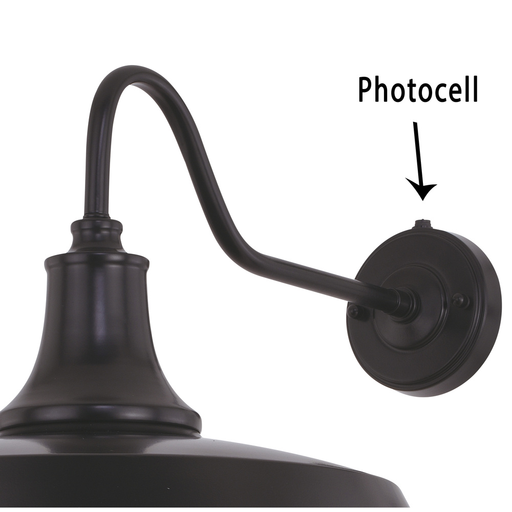 Dusk to dawn photo cell automatically turns fixture on in the dark and off in the light for added safety and security, saving energy during daylight hours