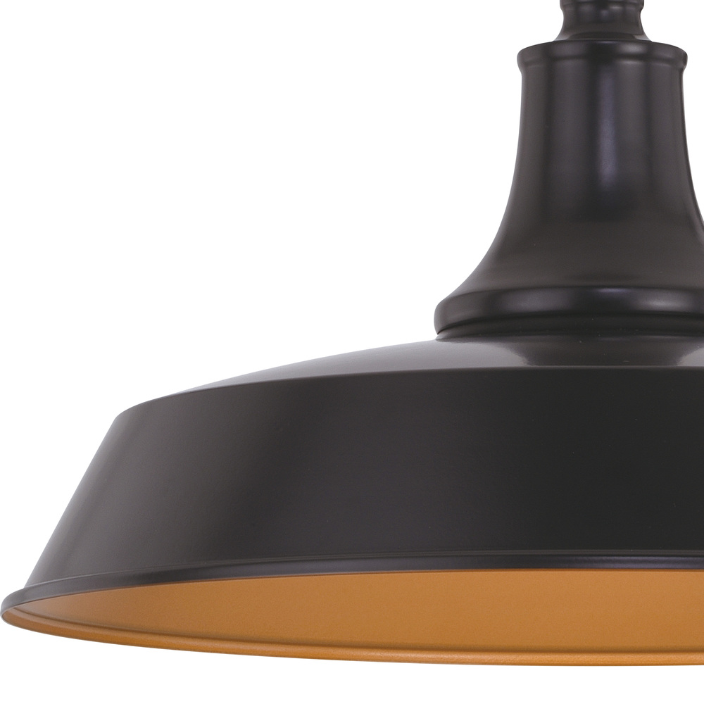 Dark bronze metal shade provides bright illumination and a farmhouse feel