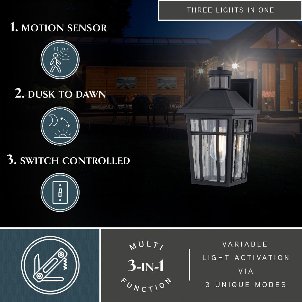 Enhance your home's security and curb appeal with the Garfield Park outdoor wall light. Its timeless tapered windowpane style adds traditional elegance, while the textured black finish complements a range of architectural styles. The motion sensor provides added security and peace of mind, automatically illuminating your space whenever movement is detected.