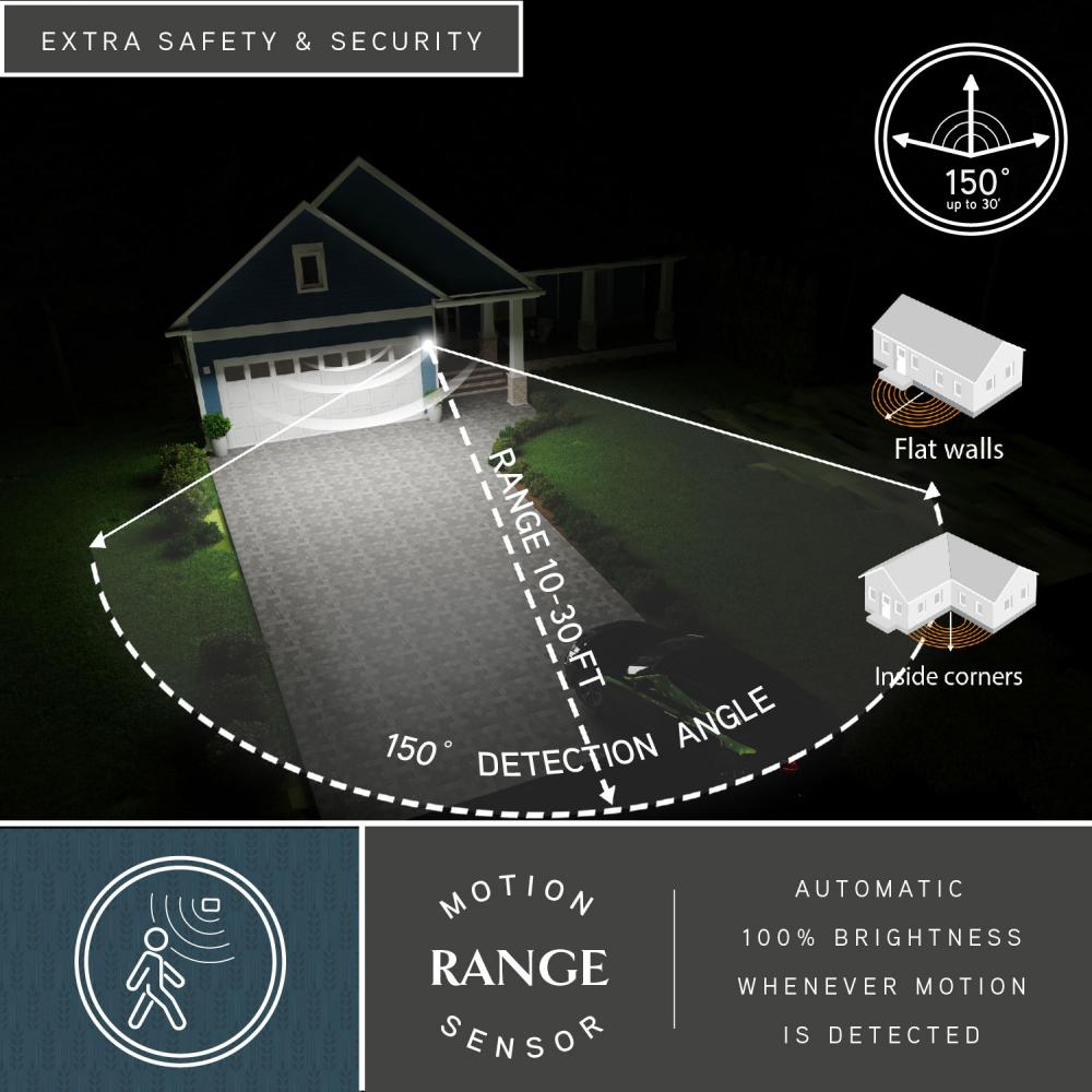 150 degree on demand motion sensor automatically turns on when movement is detected
