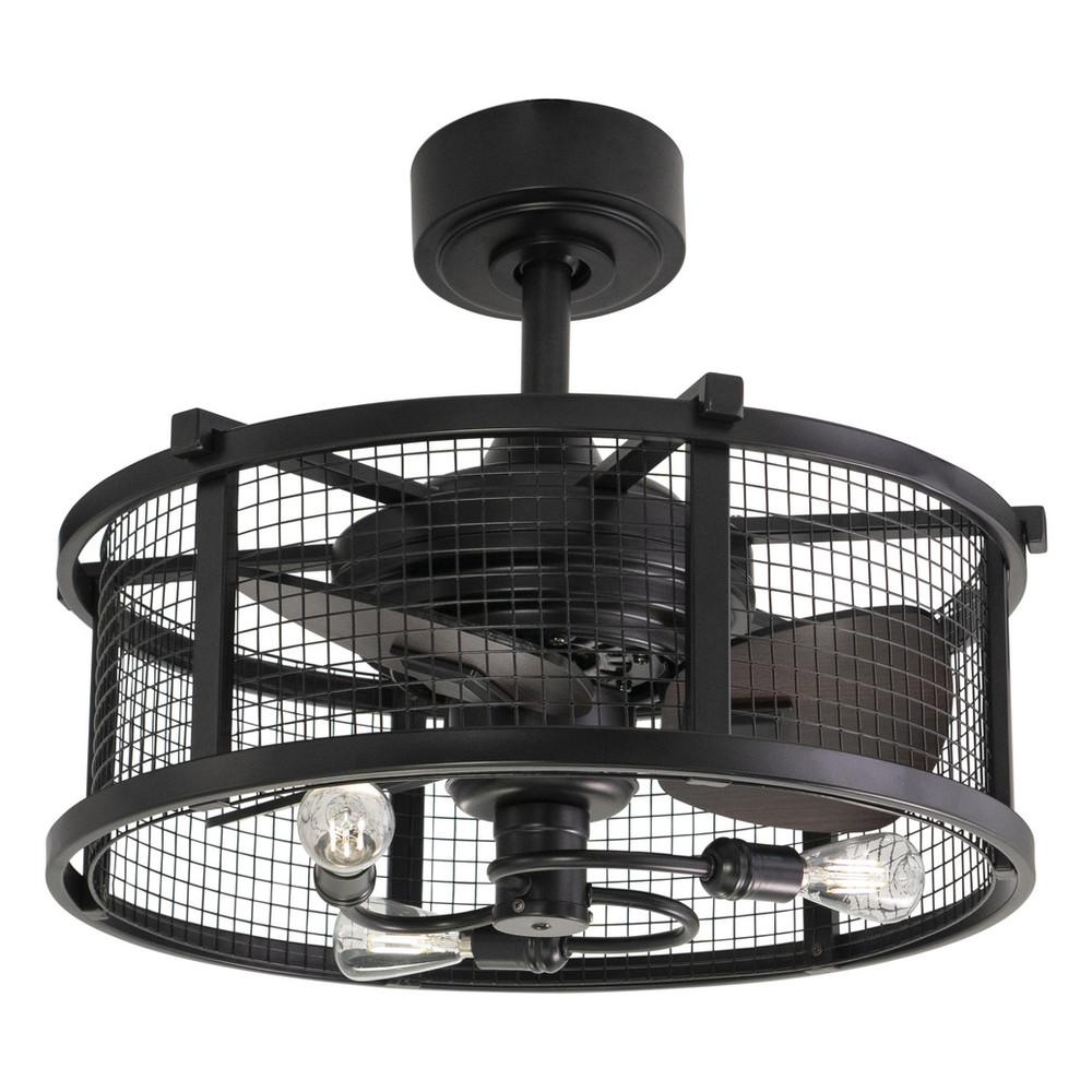 This drum style ceiling fan called Humboldt offers 360 degrees of soft industrial inspired beauty and comfort. Black finish frame and versatile reversible blades handsomely accent the metal mesh cage. This beautiful yet functional design is the perfect addition for your edgy industrial style. Add it to any bedroom, hallway, living or dining areas. This fan is compatible with sloped ceilings and includes a 6 inch down rod (longer down rods sold separately). Remote control included for added convenience.