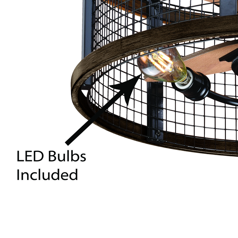 This drum style fan called Humboldt offers 360? of loft inspired beauty and comfort. Oil rubbed bronze and burnished teak wood details and blades handsomely accent, the metal mesh cage. A beautiful yet functional design addition perfect whether your style is edgy urban loft or a laid-back modern country.
