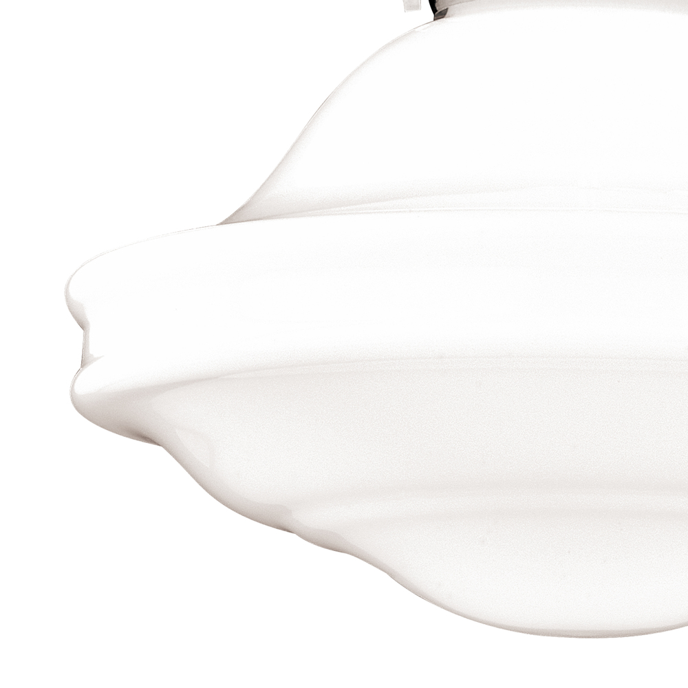 The Huntley is a timeless collection inspired by mid-century small-town aesthetics. The vintage school house glass is the focal point of this design with its unique profile and glass options. Offered in multiple finishes and glass options, this versatile farmhouse light will provide a unique accent to a variety of kitchen, dining, and bathroom settings. Medium screw base lamping provides maximum light output. The complete collection includes chandeliers, pendants, semi-flush ceiling lights, and 1, 2 3, and 4 light bathroom vanities.