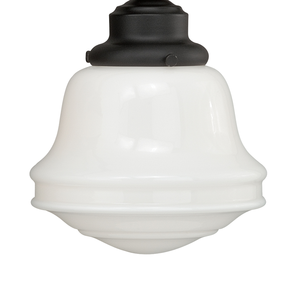 The Huntley is a timeless collection inspired by mid-century small-town aesthetics. The vintage school house glass is the focal point of this design with its unique profile and glass options. Offered in multiple finishes and glass options, this versatile farmhouse light will provide a unique accent to a variety of kitchen, dining, and bathroom settings. Medium screw base lamping provides maximum light output. The complete collection includes chandeliers, pendants, semi-flush ceiling lights, and 1, 2 3, and 4 light bathroom vanities.