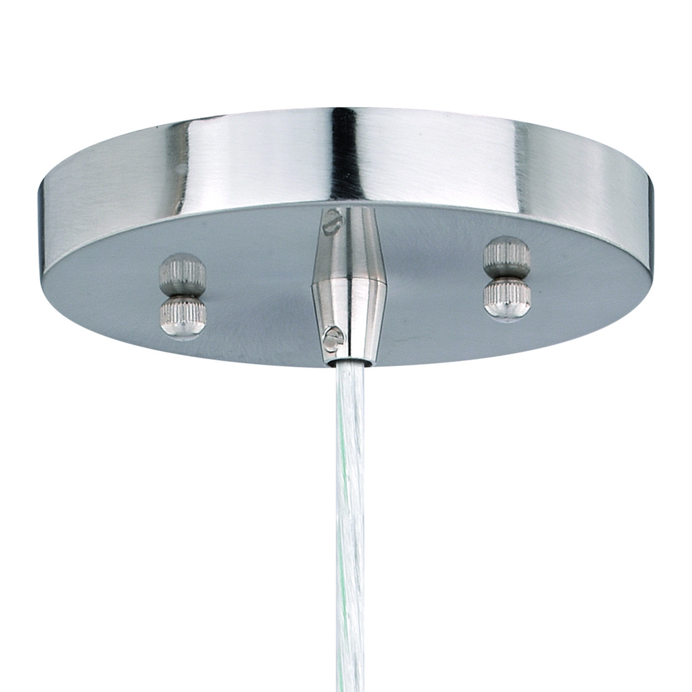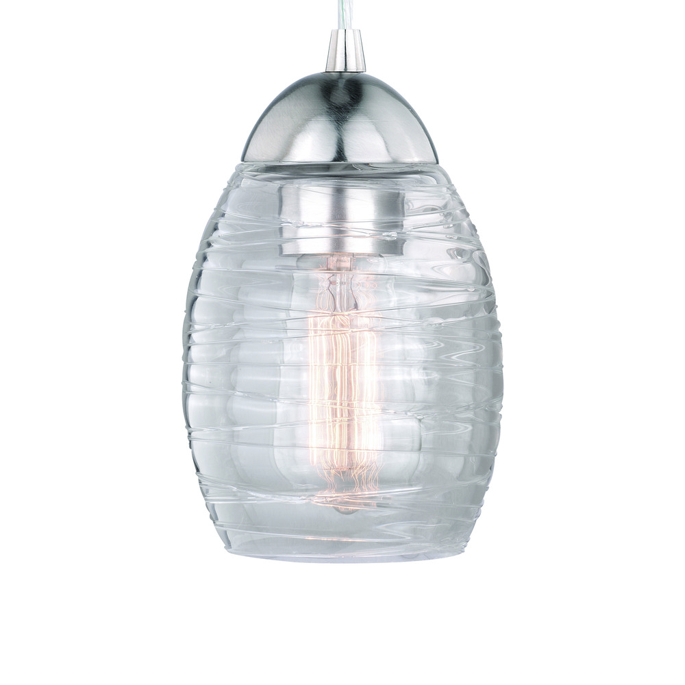 Casual and modern meet in the Isley collection. Touches of satin nickel accent the clear spun thread glass shades. When lit, the Isley beautifully casts a radial glow on the surface behind creating a dramatic effect. The Isley is sure to add a classic warmth to any interior space of the home. Install individually or in a group; ideal for kitchens, dining areas, or bar areas. Combine that with a vintage Edison style filament bulb to complete the look.