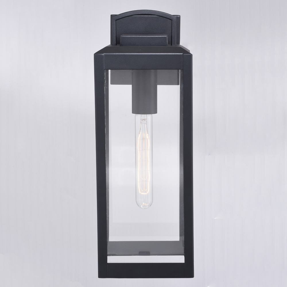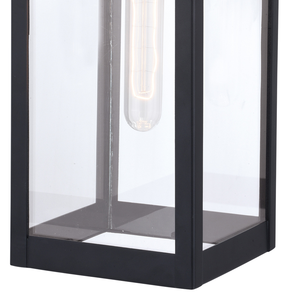 Elongated, slim, clear glass panels frame the Kinzie for a clean, contemporary feel. The oblong lantern handle adds an additional design element to this outdoor wall light collection. Finished in textured black, the Kinzie creates a bold but understated look perfect for highlighting your space. Combine that with vintage Edison style filament bulbs to complete the look. This outdoor wall light is ideal for your porch, entryway, garage, or any other area of your home.