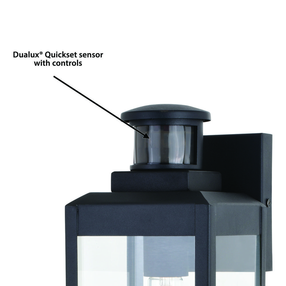 Elongated, slim, clear glass panels frame the Kinzie for a clean, contemporary feel. Finished in textured black, the Kinzie creates a bold but understated look perfect for highlighting your space. This outdoor wall light is ideal for your covered porch, entryway, garage, or any other area of your home. Dualux patented dual-level security lighting is outdoor lighting made smarter—brighter light at dusk, dimmer at night, brightening instantly when it detects motion. Designed to reliably and effortlessly enhance your home’s beauty, security and efficiency from dusk to dawn with its built in motion sensor and photocell. This fixture works with any dimmable incandescent or halogen bulb and many dimmable LED bulb models.