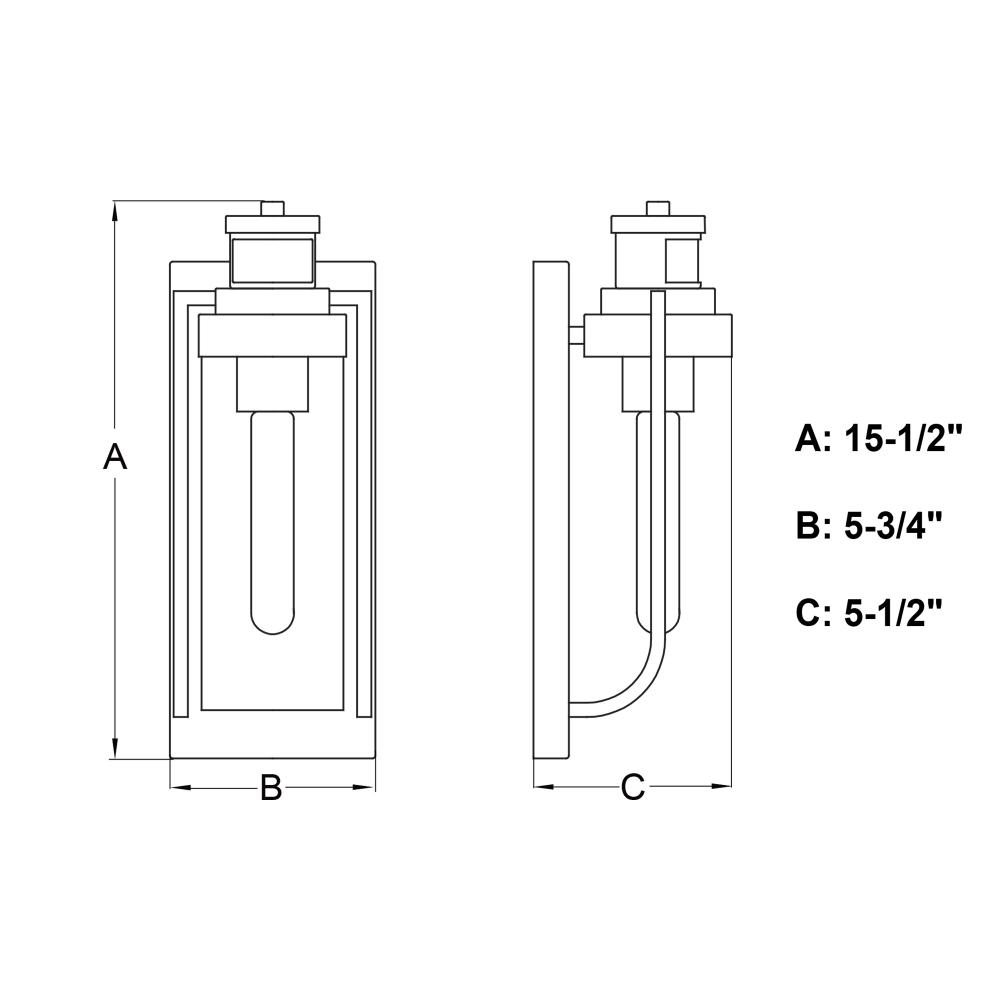 Measures 5.75-in W x 15.5-in H x 5.5-in D with a 5.75-in W x 13.75-in H backplate; height from center of mount to top of fixture: 8.75 inches