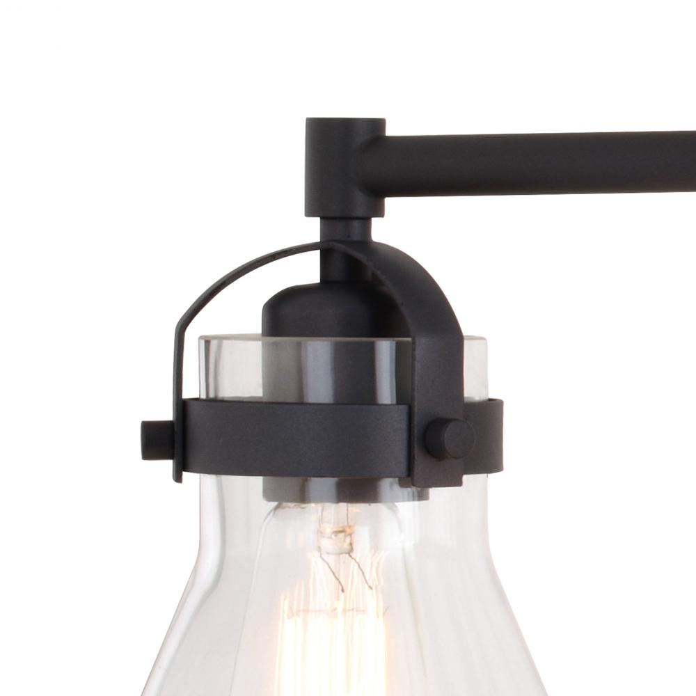 A nod to farmhouse and industrial aesthetics are realized in the Mason vanity collection. Charcoal black accents offer a striking contrast to each funnel shaped shade. As they sit perched along a horizontal support, a brilliant show of light pours from each shade, creating a bright shine on the subject below. This 4-light vanity is ideal in any bath, or interior space where extra light is welcomed.