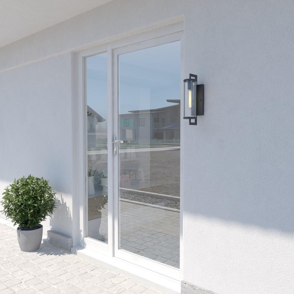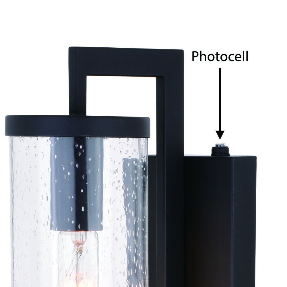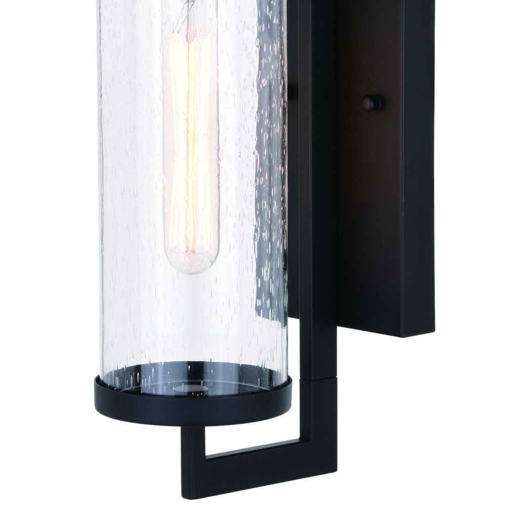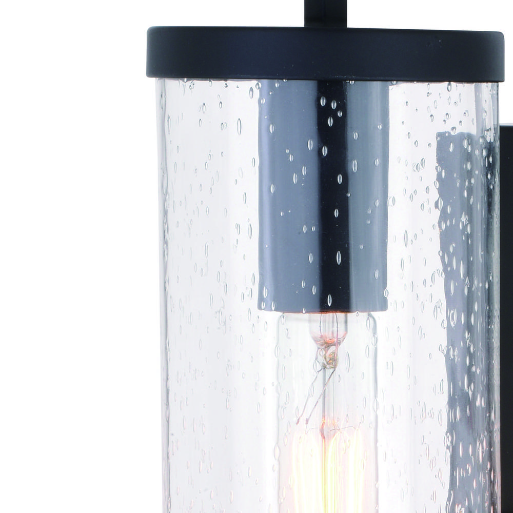 The perfect addition to your outdoor or indoor spaces! A long slim cylinder accentuates the grace and class shown in the Morgan Park collection. A striking matte black metal frame supports and suspends the clear seeded glass cylinder showcasing a generous display of light. Morgan Park is a clean simple accent suited for any contemporary decor. Add this wall mount light to any entryway, garage, hallway, or bath for that stylish touch.