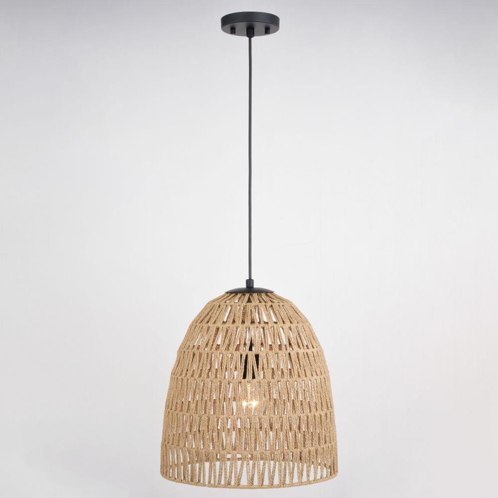 Nassau 14-in. 1 Light Pendant Matte Black and Natural Rope
