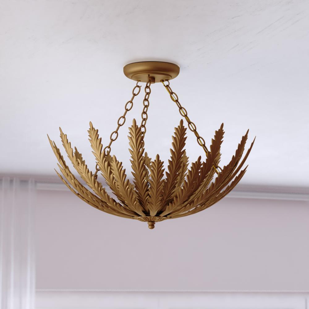 Bring nature-inspired elegance into your home with the Ozette semi-flush mount ceiling light. Its intricate leaf motif radiates from the center, creating a stunning focal point in your foyer, office or bedroom. The heritage gold finish blends seamlessly with traditional to transitional or even glam styles. This sophisticated statement piece elevates your aesthetic with timeless charm.