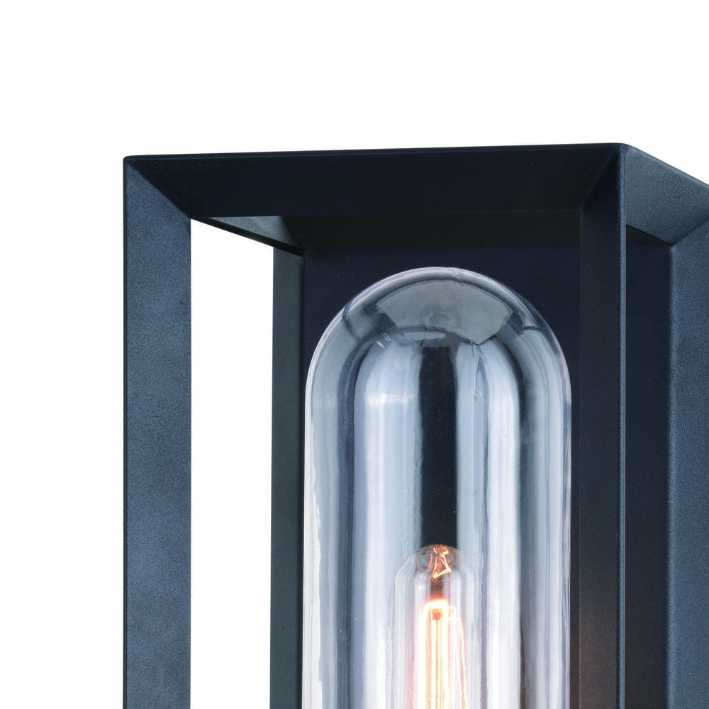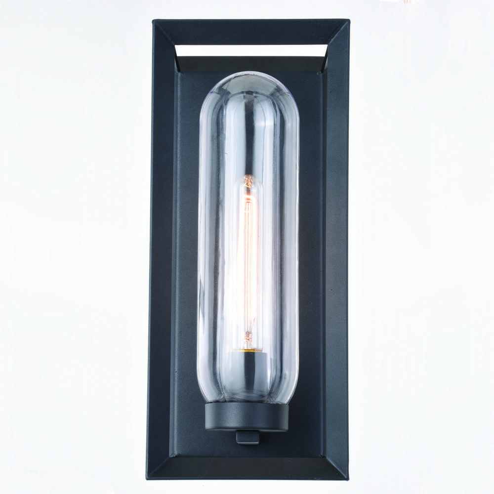 Long and lean best describes the Pullman collection. The unique chambered matte black frame strongly surrounds the generously sized light source. Pill shaped clear glass offers a clean open feel, setting the stage for this wall mount beauty to shine. Ideal for your porch, entryway, garage, or any other area of your home.