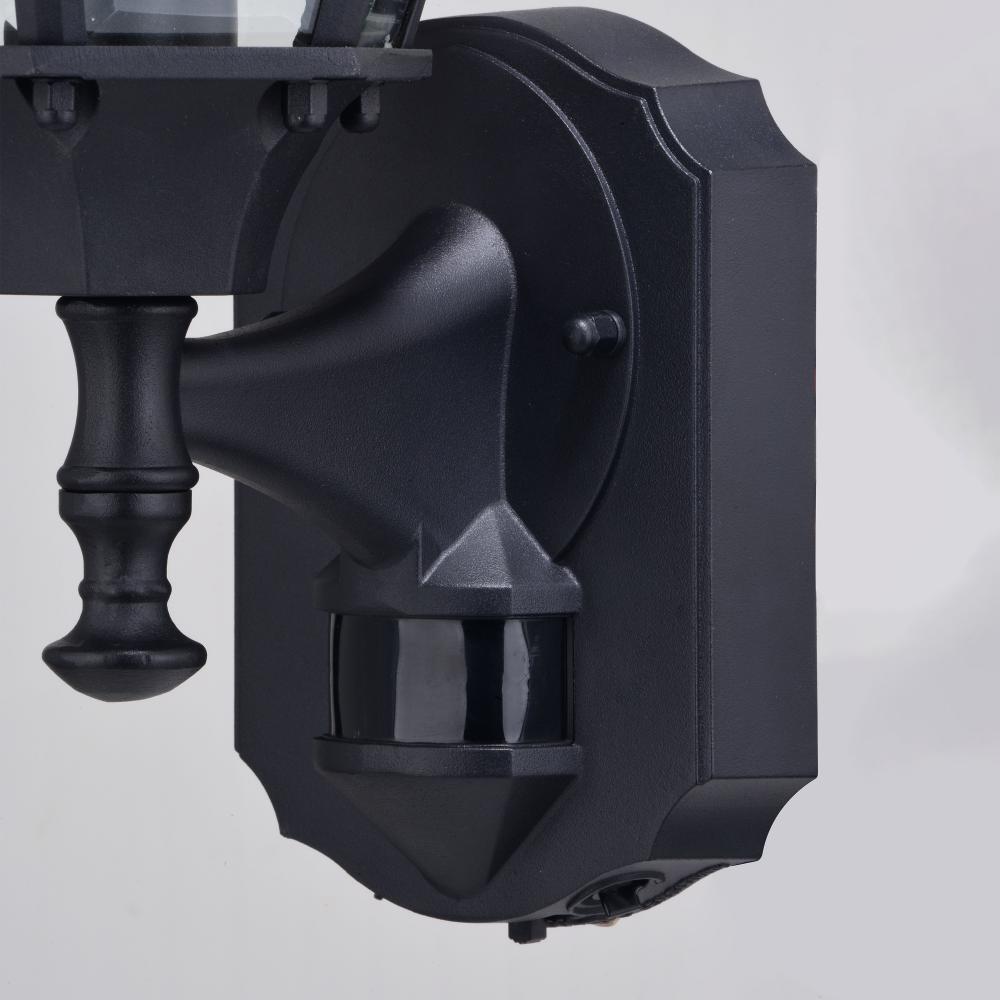 The traditionally-styled Rogers Park motion-sensor outdoor wall light is a classic beauty. The textured black finish with clear beveled glass provide the timeless look. Ideal for your porch, entryway, or any other outdoor area of your home. Dualux dual-level outdoor security lighting is designed to fit your lifestyle and enhance the beauty, safety, and usability of your home's exterior areas. Enjoy the comfort and convenience of automatic dusk-to-dawn lighting with low-level soft, ambient illumination overnight, fully brightening to high level whenever motion is detected to keep your property safe and secure. Standard on-off motion detection or full brightness dusk-to-dawn modes are also available via the EZSET controls. This fixture works with most dimmable LED bulb models. You get convenience, security, and efficiency of a security light integrated within a Dualux decorative outdoor light fixture.
