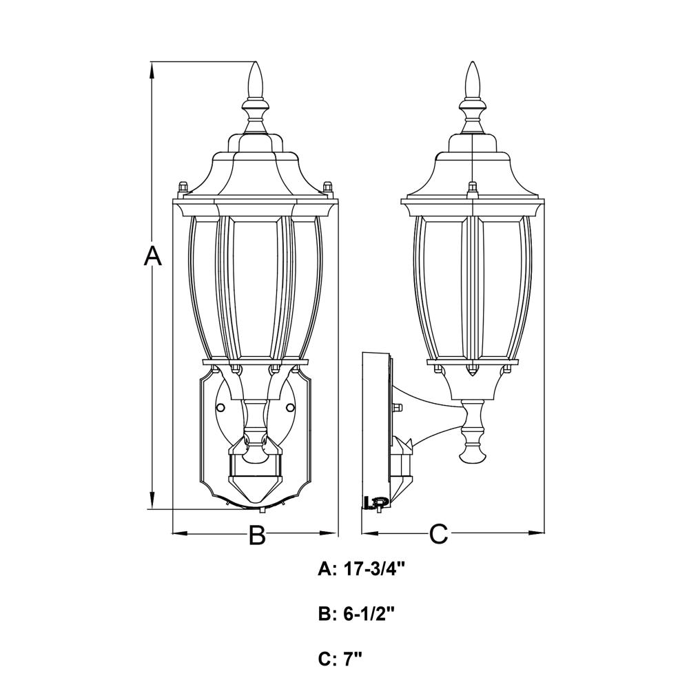 Measures 6.5-in W x 17.75-in H x 7-in D with a 4.37-in W x 6.18-in H x 1.18-in D backplate
