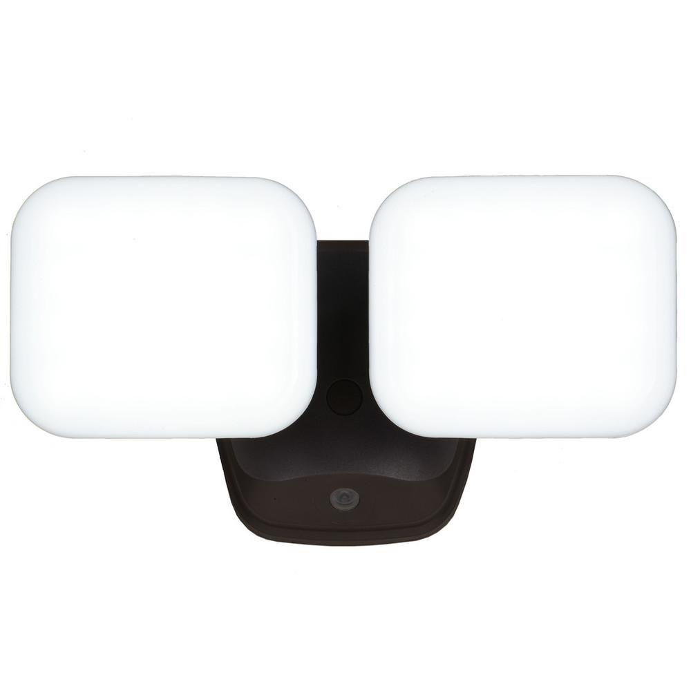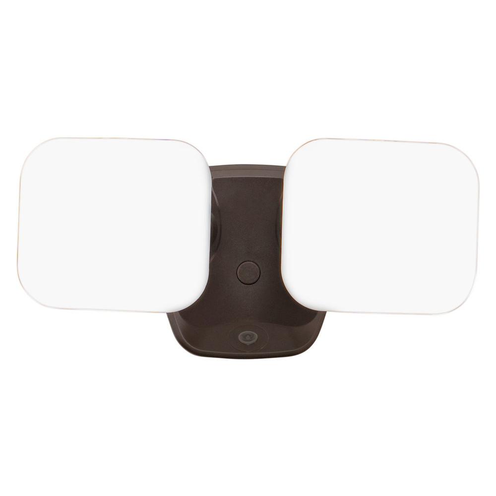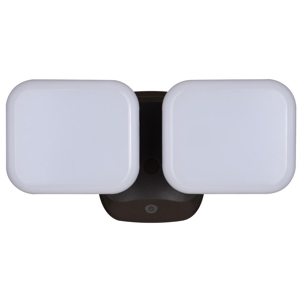 The bronze Theta 2-light LED outdoor motion sensor flood light provides low level 2700K ambient lighting throughout the night and bright 5000K high level when motion is detected. The modern light heads are fully adjustable and deliver 2200 lumens to keep your home's exterior brighter at dusk, dimmer at night, and instantly bright when motion is detected. This dualux security light expands the functionality, safety, and security of your home's outdoor spaces with bright, reliable light when and where it is needed.
