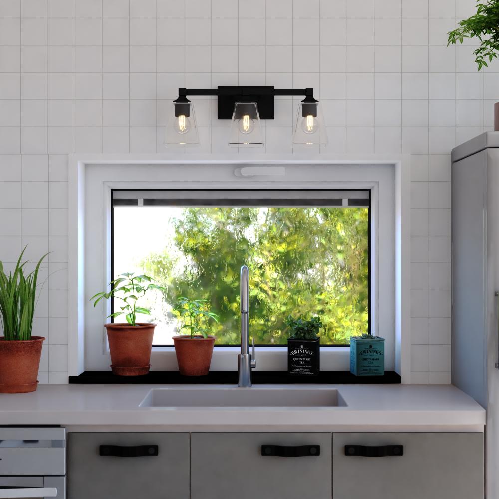 Elevate your bathroom with the elegant Wallingford vanity light. The thick matte black finished arms complement the clear rectangular tapered glass to create a sturdy, yet timeless traditional look. Ideal for adding over either dual or single sinks in your primary, secondary bathrooms or powder rooms.