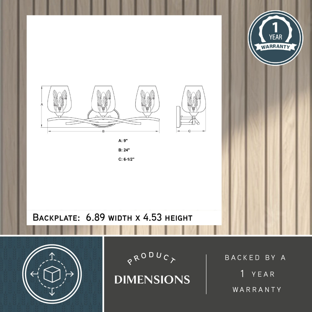 Infuse your bathroom with a touch of glamour with the Wilmette 3-light wall fixture. Its polished chrome finish and clear tulip-shaped glass shades, encase shimmering crystal buds, create a dazzling focal point. This transitional design effortlessly blends classic elegance with modern flair, making it perfect for both traditional and contemporary bathrooms. The intertwining rod detailing adds a unique, dynamic touch, while the damp-rated construction ensures lasting beauty in moisture-prone environments. Install above your vanity mirror to create a spa-like ambiance and elevate your daily routine.