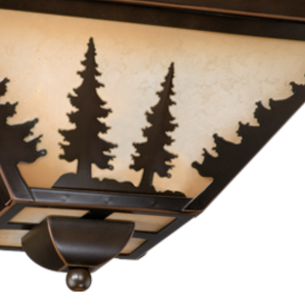 Evoking the spirit of the wilderness, this rustic themed light is clad in a burnished bronze finish and features silhouetted tree imagery atop glowing white tiffany style glass. It is a great choice for a vacation lodge, cabin or suburban home and will complement a variety of home styles: anywhere you want to bring an element of nature. This outdoor ceiling light is ideal for your porch, entryway, or any other area of your home.