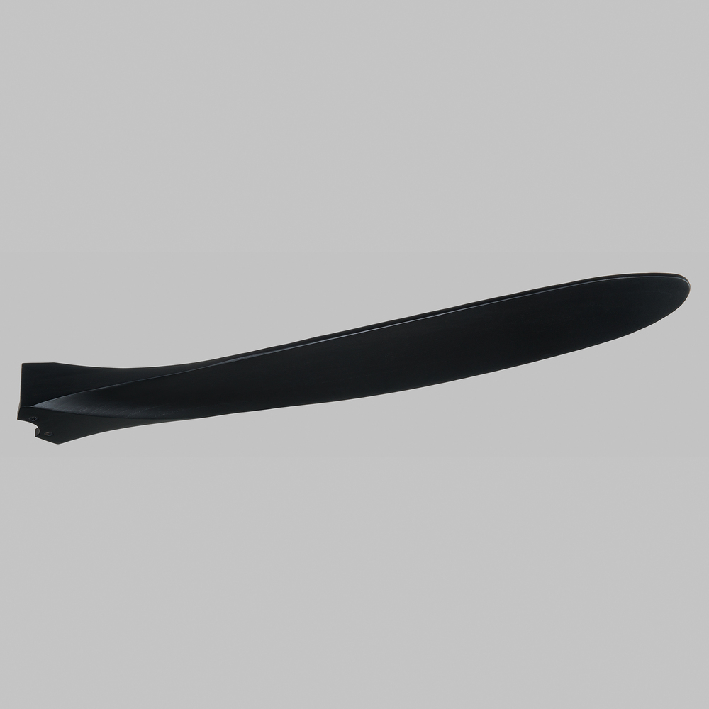 The Maverick 88 in Matte Black w Matte Black Blades features a 120.0 X 25.0 6 speed motor with a Thirteen degree blade pitch. With a sleek modern silhouette, a DC motor and super energy-efficiency, the 88" Maverick Super Max ceiling fan from features softly rounded blades and elegantly simple housing. Maverick Super Max has an impressive 88-inch blade sweep and a 3-blade design that delivers a distinct profile and incredible airflow for extra-large living rooms, great rooms or outdoor covered areas. It includes a hand-held remote with six speeds and reverse, and is available in six distinct finish options: Brushed Steel housing with Dark Walnut blades, Brushed Steel housing with Koa blades, Matte Black housing with Dark Walnut Blades, Aged Pewter housing with Light Grey Weathered Oak blades, Matte Black housing with Matte Black blades and Matte White housing with Matte White blades. All versions feature beautiful hand-carved, balsa wood blades.