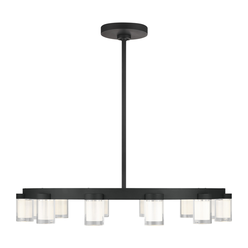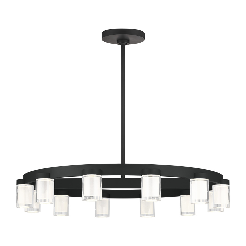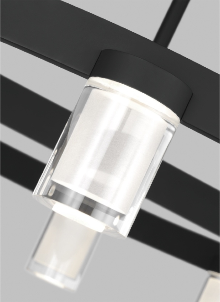 The Esfera Medium Chandelier by Kelly Wearstler for Visual Comfort Modern realizes the beauty of elemental materials and spatial symmetries. In an elevated exchange of visual textures and clarity of form, the transitional design of this piece is a modern portrait of the convergence of cylindrical multi-dimensional prisms as integral sources of light with simple, linear metal detailing in varied geometric gestures as the connecting base.