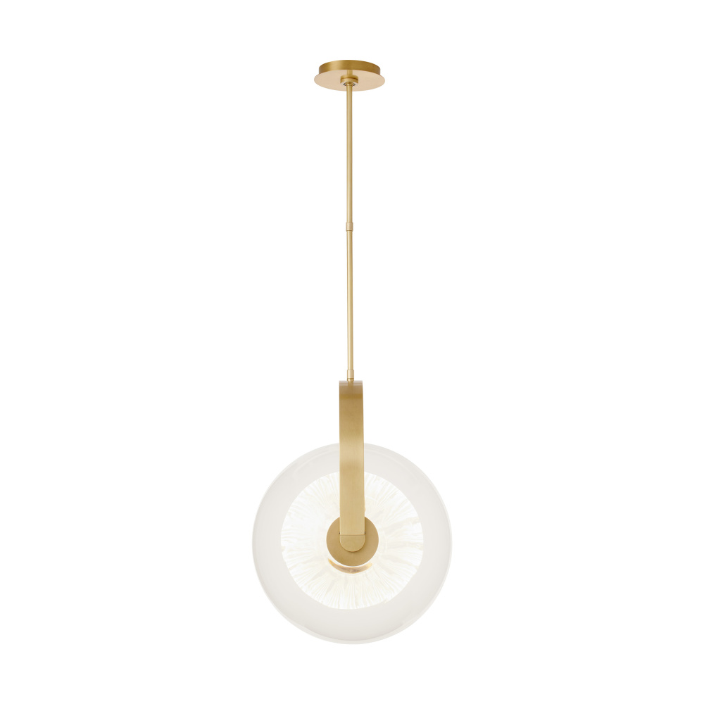 Inspired by mid-century design, the Fues Pendant celebrates the spherical geometry with center glass diffuser