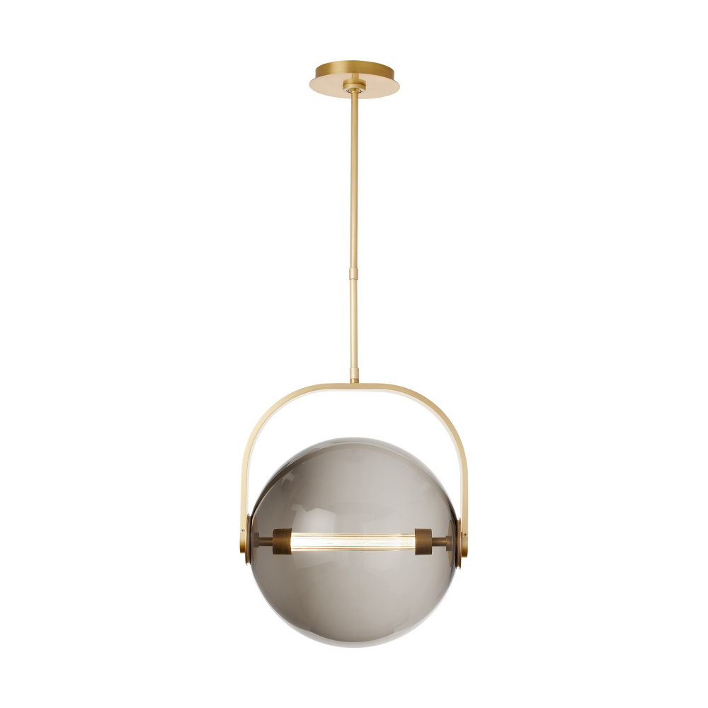 Inspired by mid-century design, the Fues Pendant celebrates the spherical geometry with center glass diffuser