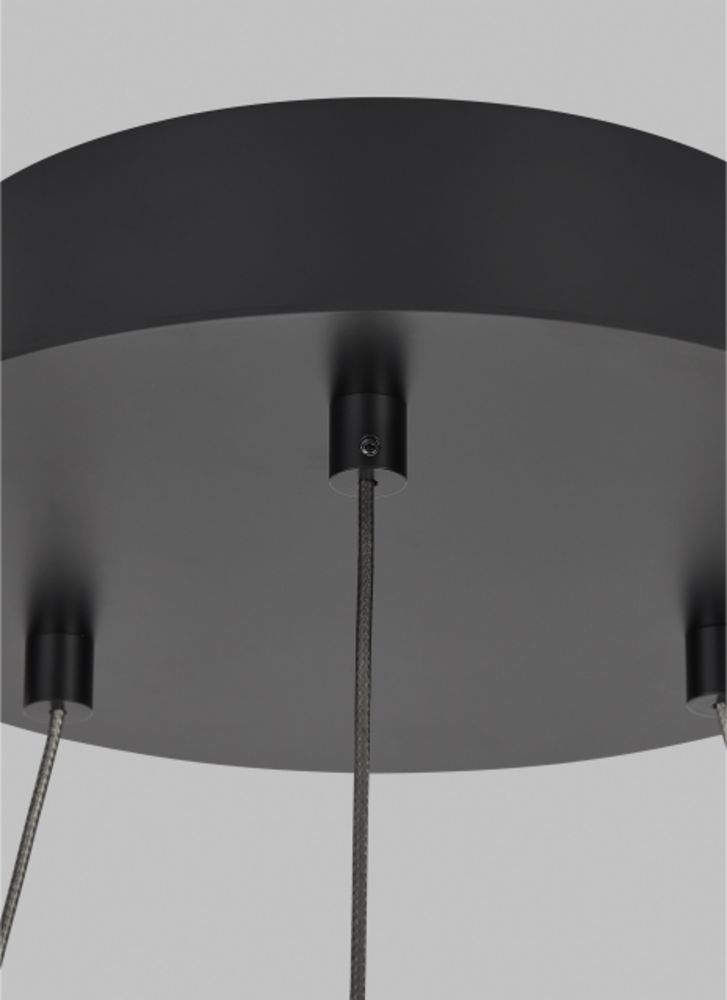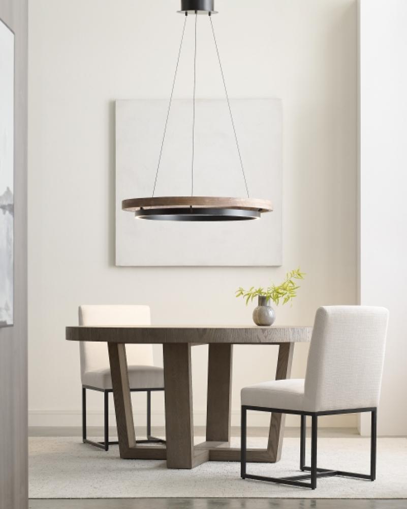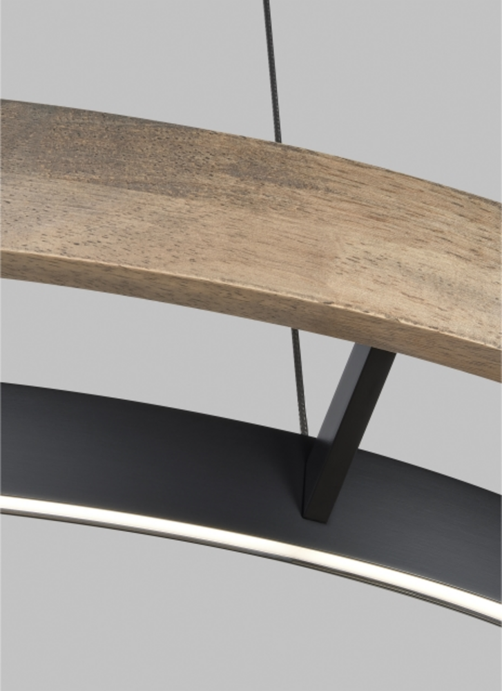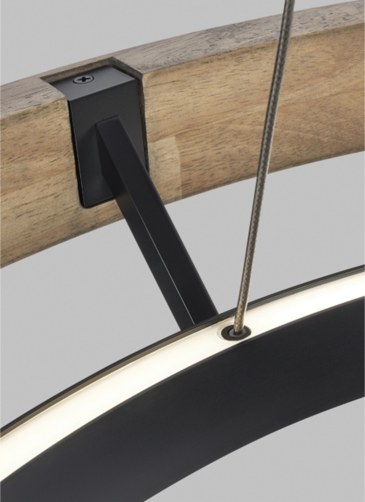 Grace 36 Chandelier by Sean Lavin is designed with two rings that illuminate this contemporary chandelier. A large natural oak outer ring has organic texture complemented by a decorative black inner ring housing gently diffused upward and downward LEDs. Featuring integrated LED technology on the inner ring, the Grace Chandelier provides a graceful halo of light. Lamping options are compatible with most dimmers. Refer to the Dimming Chart for more information