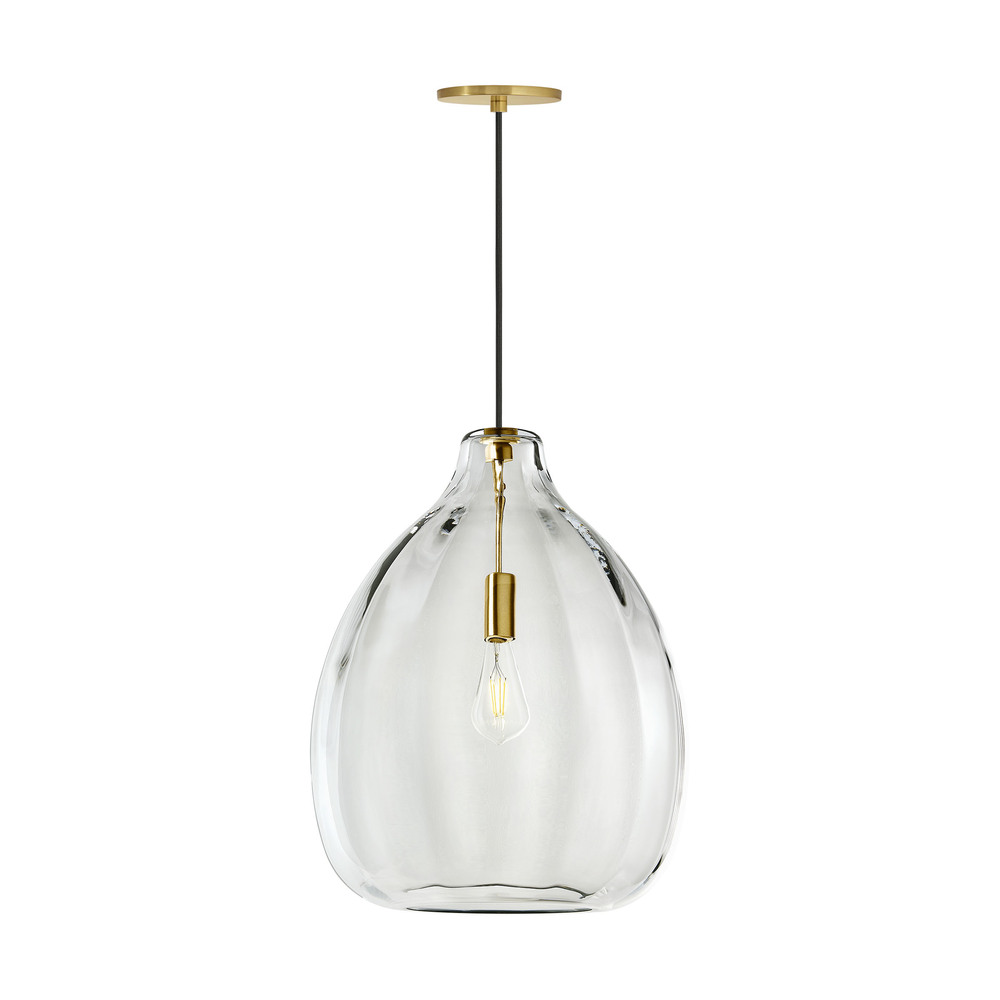 The Harper pendant by Visual Comfort Modern Collection draws the eye with its beautiful tear dropped ribbed organic texture. This large glass pendant is handcrafted by highly skilled artisans on Murano Island Venice. The artisans start by creating a classic bulb shape and then gently manipulate the glass into a perfectly ribbed texture. This contemporary glass pendant comes in multiple on-trend finishes. Available lamping options include energy efficient LED or no-lamp, leaving you the option to light this fixture with your preferred lamping. The LED lamping option is fully dimmable to create the desired ambiance in your special space. With its grand scale and beautiful color options the Harper pendant is ideal for dining room lighting, home office lighting and foyer lighting.